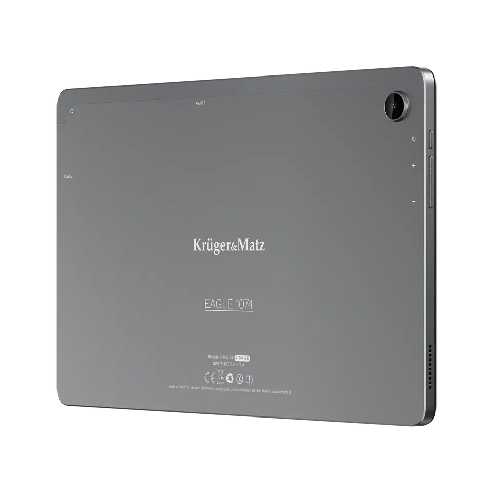 The Kruger&Matz EAGLE 1074 tablet will allow you to store a really large amount of files, music and applications. The device is equipped with 64 GB of internal memory, which can be increased up to 2 TB using a memory card.