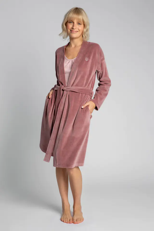 LA009 Velour bathrobe with belt - dirty pink Colour: dirty pink, Size S (36)
