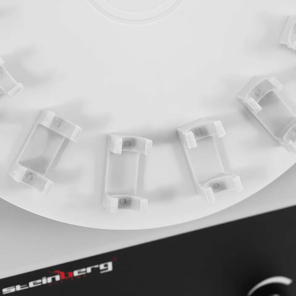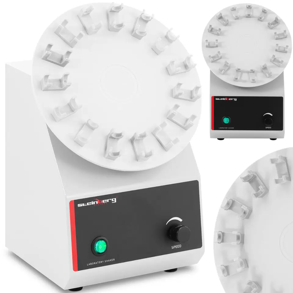 The shaker has a power of 6 W. It performs uniform rotational movements at an angle of inclination of 38. The speed can be adjusted from 0 to 40 rpm using the knob, which allows adjustment to the type of test substance. Vials with a diameter of 13+/- 0.1 mm can be securely attached to the 15 spring terminals of the agitator. The disc has a diameter of 220 mm. The housing of the agitator is made of ABS plastic, it is perfect for continuous work in the laboratory.