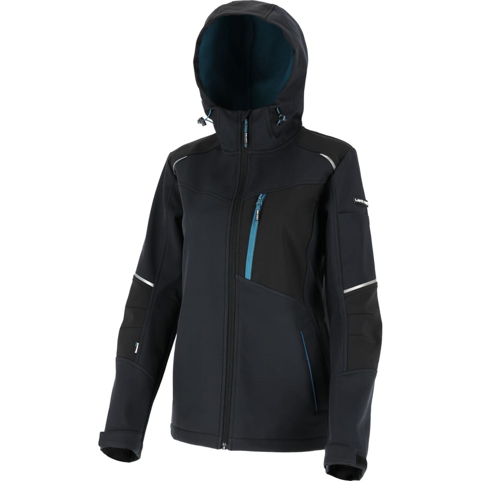 LADIES' SOFTSHELL JACKET, HOOD,BLACK-TURQUOISE,"XL",CE,LAHTI