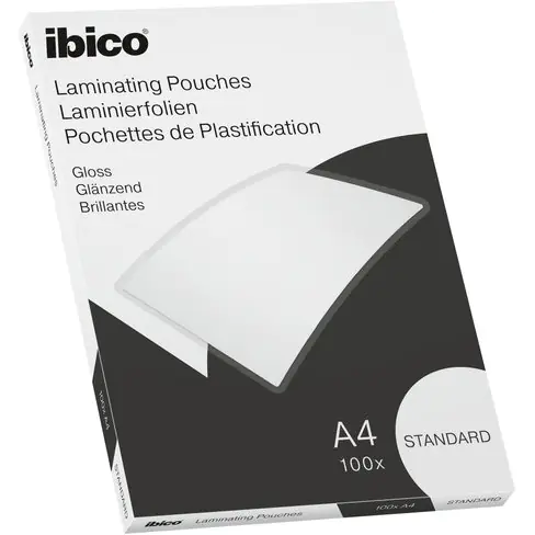 Laminating film brand IBICO model: 627310 Standard in a package of 100 pieces, A4 format. Film with a thickness of 125 microns. It protects against dirt, spills, fingerprints and adverse weather conditions. Dimensions: 216 x 303 x 2 mm.