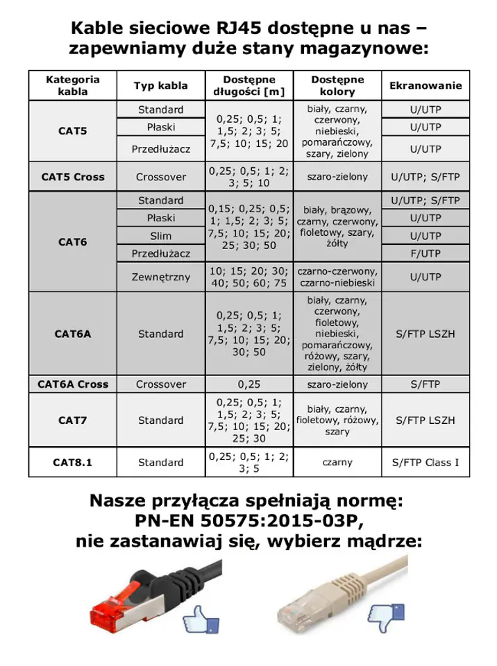 Cable available in different sections (see offer title): 10; 15; 20; 30; 40; 50; 60; 75 metres.