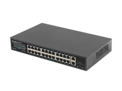 The switch is equipped with a total of 28 ports, including 24 PoE+ (Gigabit Ethernet), 2 Uplink (Gigabit Ethernet) and 2 Uplink (SFP Gigabit) ports. A well-thought-out design and attention to the quality of components provides the user with up to 360 W of total real power for end devices, which means that it is possible to connect simultaneously: