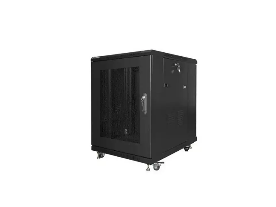Free-standing installation rack cabinet 19" 15U 600x800 black Lanberg perforated doors (flat pack)