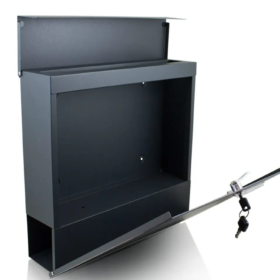 A mailbox containing letters in A4 format is the perfect proposition for your home. Universal color will allow you to match any property. Resistant steel from which the box is made will allow you to use it without fear of corrosion. The stainless steel box is made of stainless steel powder coated in graphite color. The box contains mounting materials and two pairs of keys for the lock.