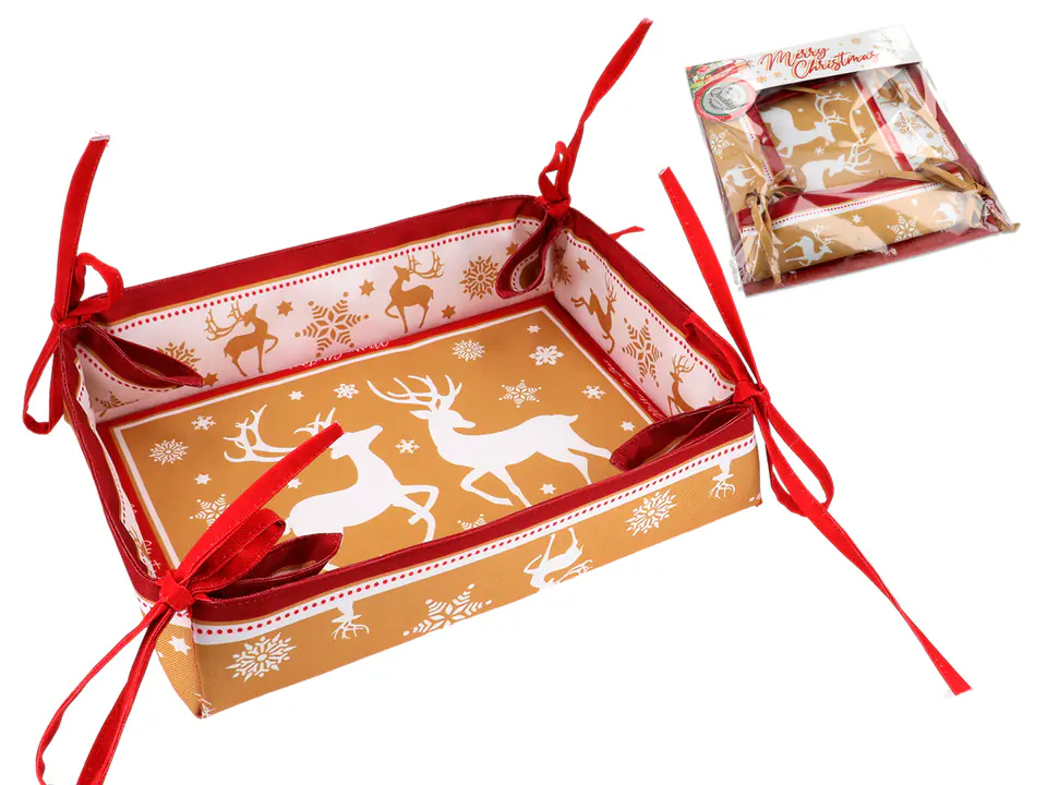 The CARMANI material bread basket is the perfect accessory on your table. Tied on the corners, it takes up little space.