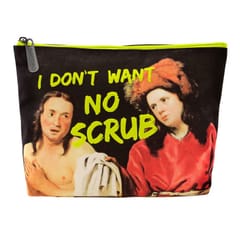 Large cosmetic bag, pouch - Masterpieces - No Scrub Fantastically designed cosmetic bag, sachet inspired by works of world painting. A witty Masterpieces collection full of bags, accessories and stationery inspired by works of world painting, which presents paintings by famous painters with intelligent quotes referring to everyday life. The neon colors of the quotes and the edges of the pages and the graffiti-style inscriptions make this a collection that we will treasure for many years to come. The products of this collection will be an excellent proposition for extremely interesting gifts for any occasion. The collection includes many series such as: Not Another Hipster, Plastic Is So Last Season, No Scrub, Manscaping, I Woke Up Like This, Looking For My Natural Beauty, Sweet But Psycho, Oh Ship, etc. Cosmetic bag fastened with a zipper. It's good for storing almost everything from travel essentials to coins and cards to makeup sets. Great for the gym or for a weekend getaway. Stylish pattern maintained in a beautiful vivid color palette, decorated on the front with a funny neon quote written in the style of graffiti. The material from which it is made resembles a painting canvas. Made of recycled material. Dimensions: 28 cm x 21 cm x 9 cm.