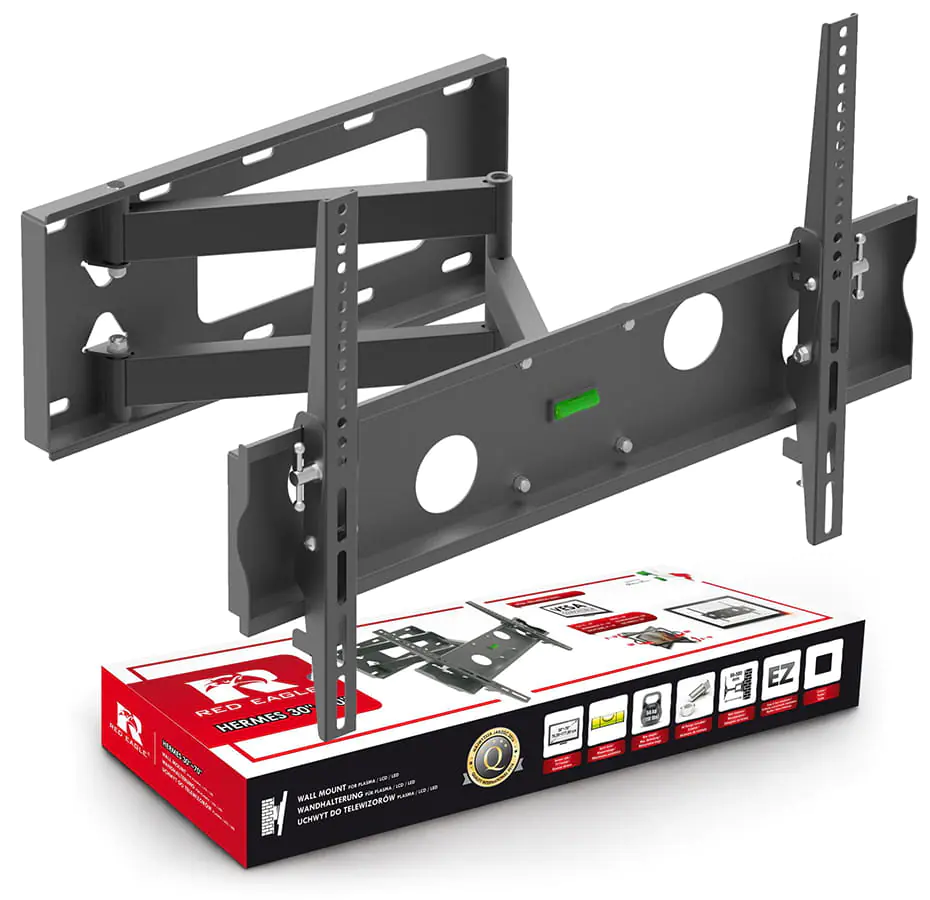 Wall mount for LCD 30"-70", adjustable in black, made of durable steel, powder coated. It provides a secure mounting on the wall of an LED TV with a screen diagonal of up to 70" and a weight of up to 50 kg. The 580 mm long frame allows the TV to tilt largely from the wall. Adjustable vertically up to 15 degrees.