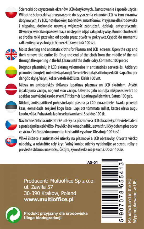 LCD/TFT CLEANING CLOTHS 100PCS AS-01 ART
