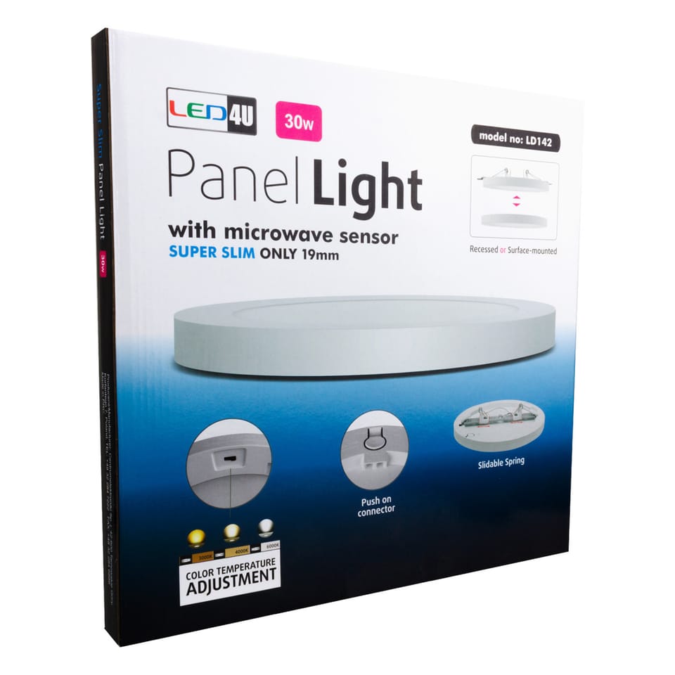 LED ceiling lamp designed for automatic illumination of internal parts of rooms such as: staircases, corridors, cellars, garages, changing rooms, etc. The product enables automatic activation of the load, when motion is detected in the detection field, thanks to the microwave motion sensor. Ultra-thin base perfect for any interior. The set includes a complete user manual in Polish.