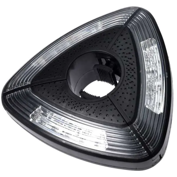 LED Garden Umbrella Lamp Triangular Lamp For LED Umbrella Perfect for Summer Days About Garden, Terrace. Made high quality plastic. A great idea how to illuminate the space under a garden umbrella without cables. Specifications: Material: Plastic, Battery powered 2 x AA (not included), Width:19cm, Diameter:38-48mm, Color:Black, 3-LED panels of 5 bulbs, Warm Light.