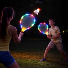 The product "TENNIS RACKETS GLOWING LED + SHUTTLECOCKS" is distinguished by the fact that the rackets are illuminated with LEDs. The gameplay after dark is an amazing experience.