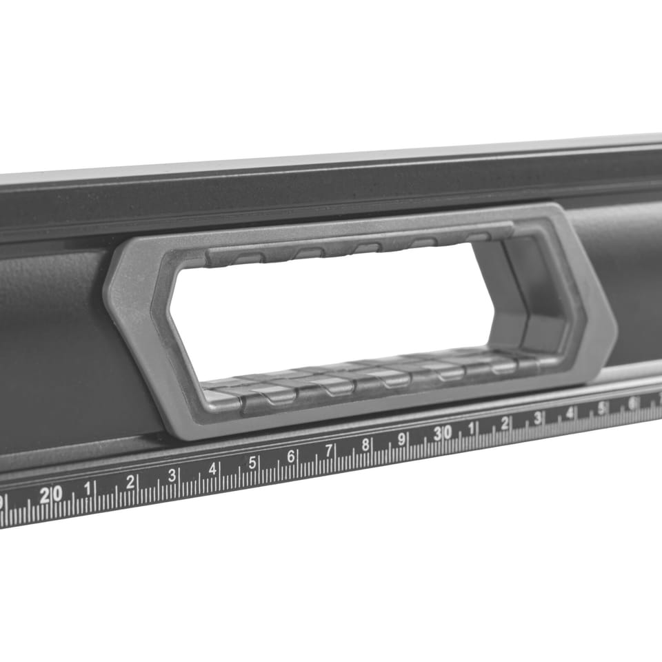 - A spirit level with handles from the PREMIUM series, made of a rectangular aluminum profile, additionally shaped