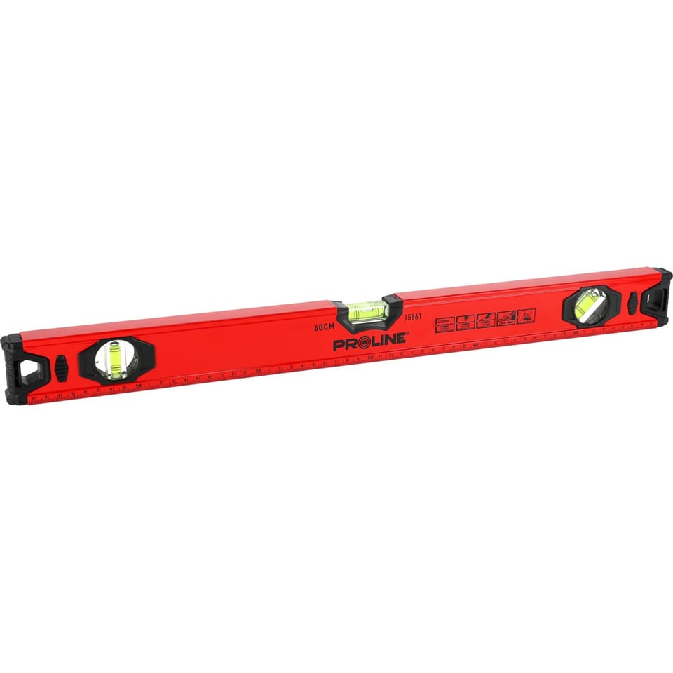 - The spirit level is equipped with 3 vials (90° / 0° / 45°) ensuring measurement accuracy of 1 mm/1 m