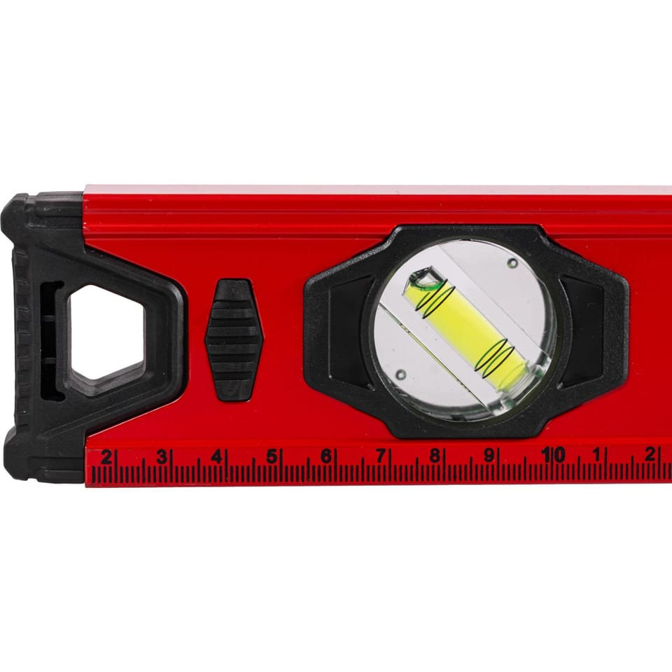 - A spirit level with handles from the STANDARD series, made of a rectangular aluminum profile, additionally shaped