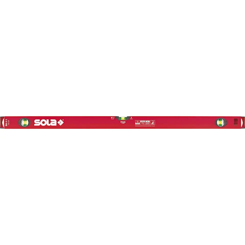 Design: light metal rectangular profile, shock absorbing plugs. With one horizontal libella and two vertical libellas. Accuracy in the normal position: 0.5 mm/m, accuracy in the inverted position: 0.75 mm/m.