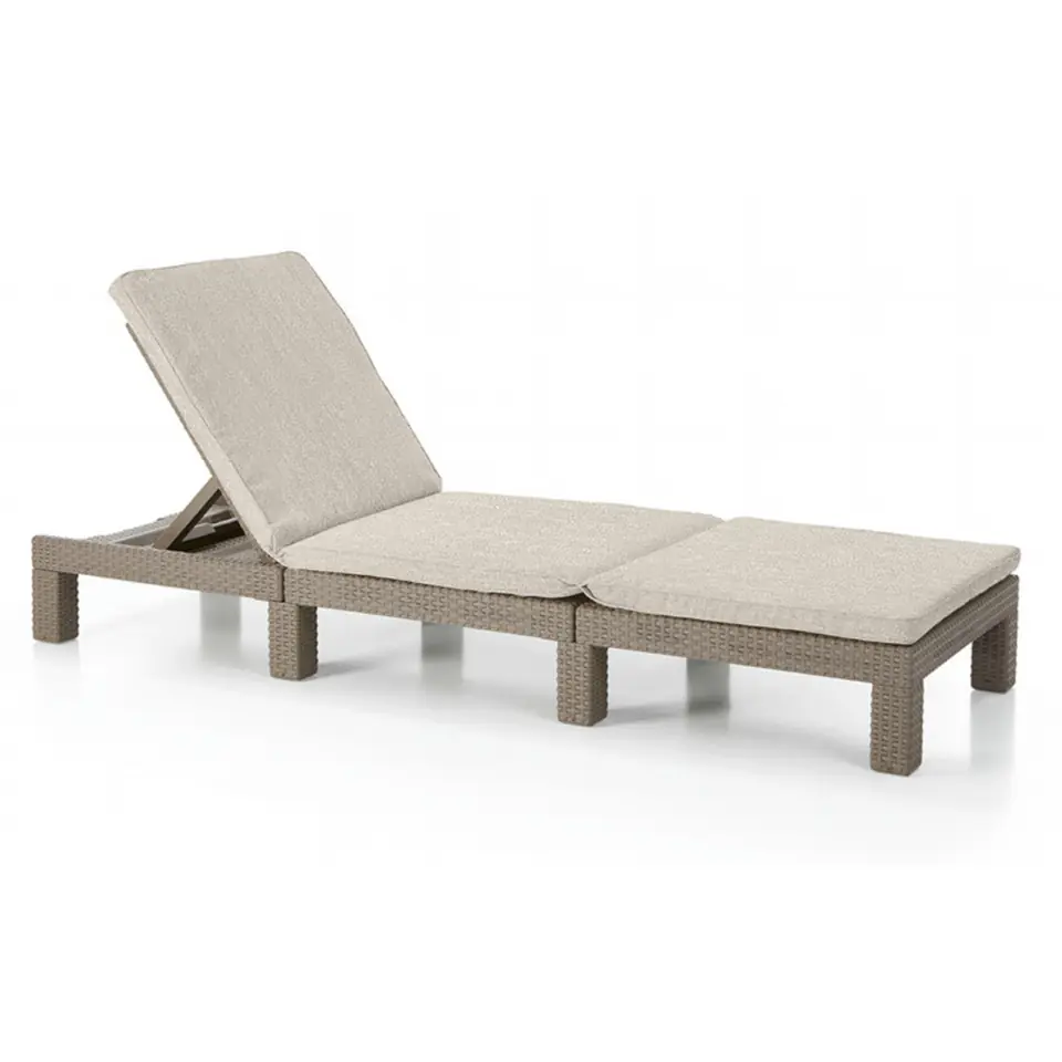 Elegancki leżak ogrodowy Daytona znakomicie sprawdzi się w otoczeniu domu, na tarasie lub balkonie. Leżak wyróżnia się lekką i stabilną konstrukcją z ośmioma nóżkami oraz profilowanym oparciem z pełną, czterostopniową regulacją odchylania oparcia względem siedziska.