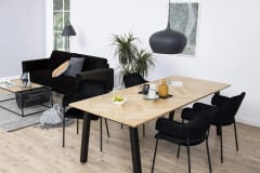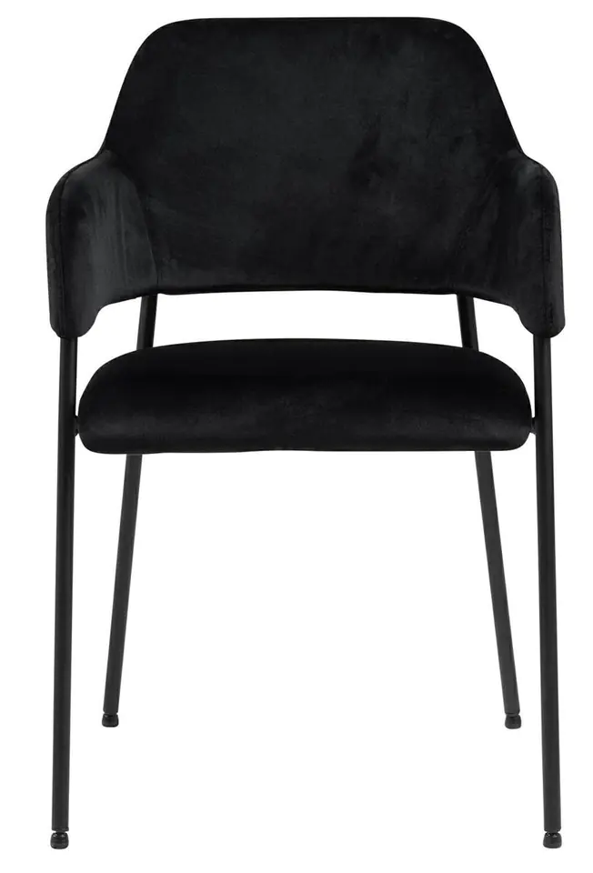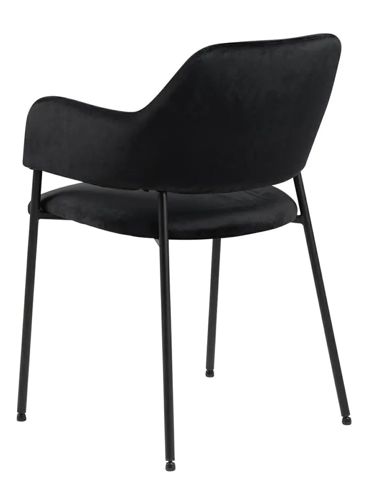 The presented model was created as a result of a combination of metal legs powder coated in black and black polyester fabric, which is extremely pleasant to the touch. The Lima chair is equipped with armrests that increase the comfort of use. The correct body posture is provided by a profiled backrest with an original cutout, which further diversifies the appearance of the furniture.
