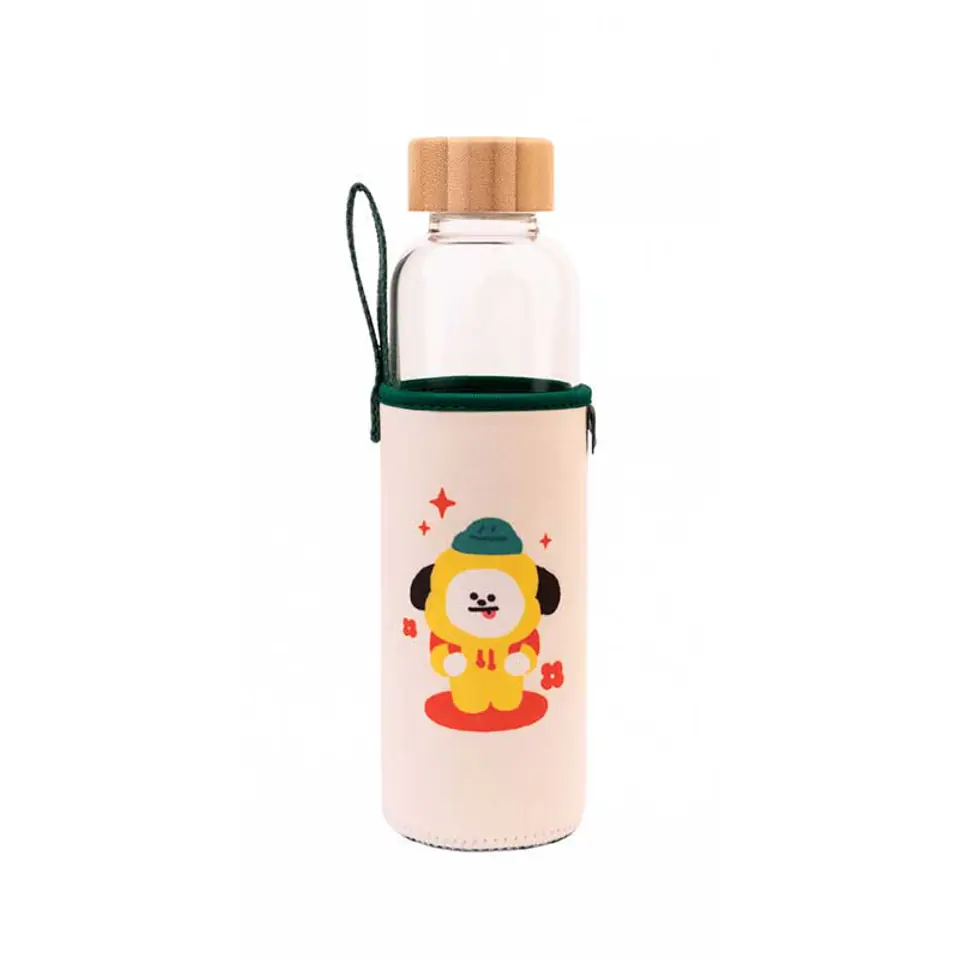 Reusable glass bottle with Line Friends BT21 Chimmy motif with a capacity of 500ml.