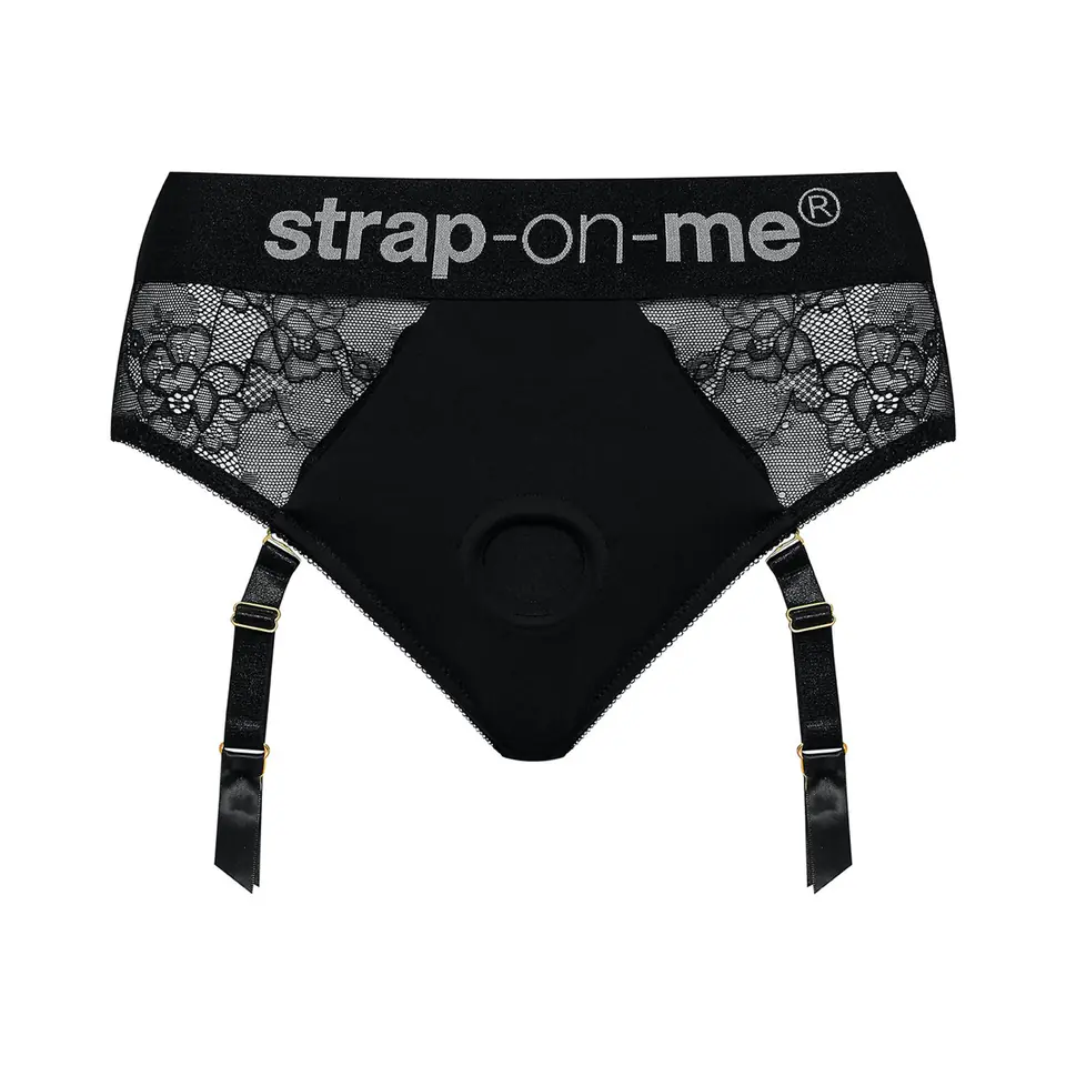 Lace harness will seduce you with its elegance and comfort. The harness is equipped with an elastic waistband and adjustable garter straps to maximize your comfort. The sensual opening at the back adapts to the shape of the buttocks and gives them an extremely sexy character. To give free rein to your imagination and dare all fantasies, the harness is compatible with all Strap-On-Me, regardless of size or color.