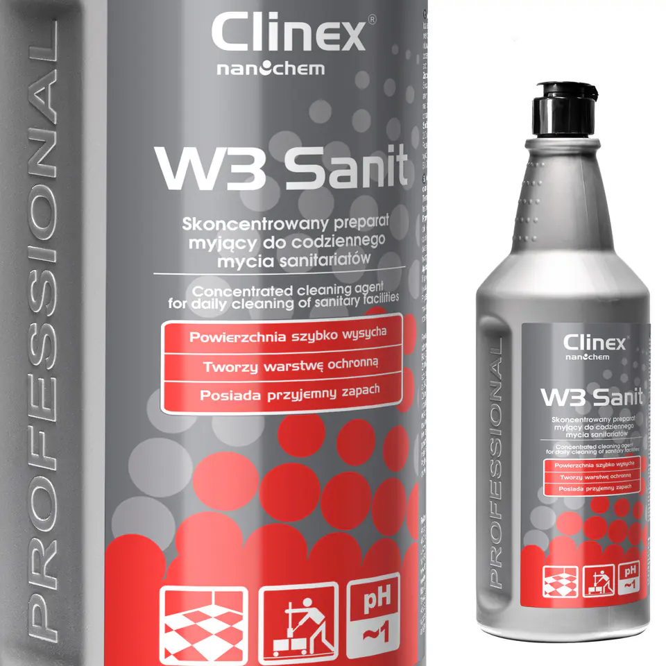 Liquid concentrate for washing the glaze of wall floors in sanitary bathrooms CLINEX W3 Sanit 1L