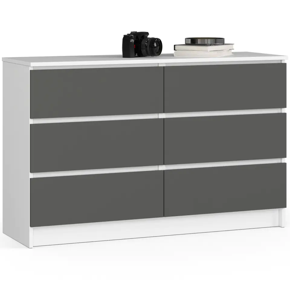 Living room chest of drawers K 120 cm 6 drawers - white-graphite grey