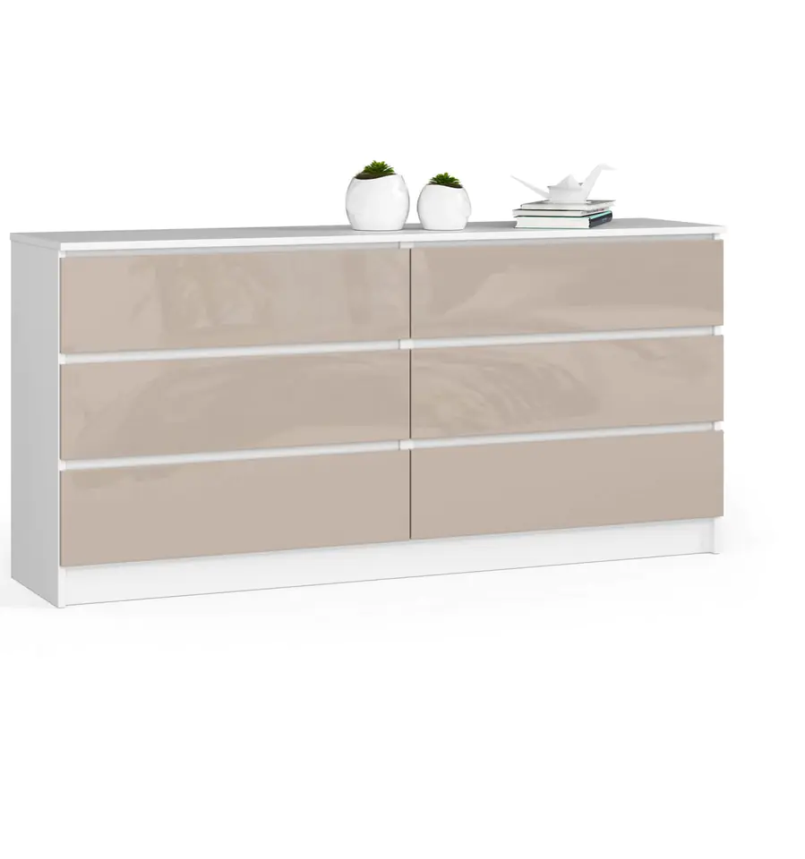 - Chest of drawers body made of white matt laminated board 16mm resistant to abrasion
