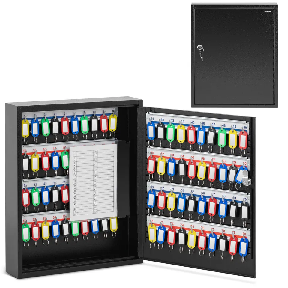 10240031 The Stamony key cabinet conveniently store the keys is locked to the wallmax. 80 keysThe case has 80 hooks and the set includes 80 colored pendantspaper lists with a thickness of 0.7 mmProduct values: