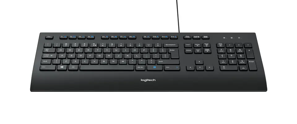 Klawiatura firmy Logitech to eleganckie wzornictwo w kolorze czarnym. Bardzo czułe przełączniki klawiszy zapewniają miękką i cichą pracę.