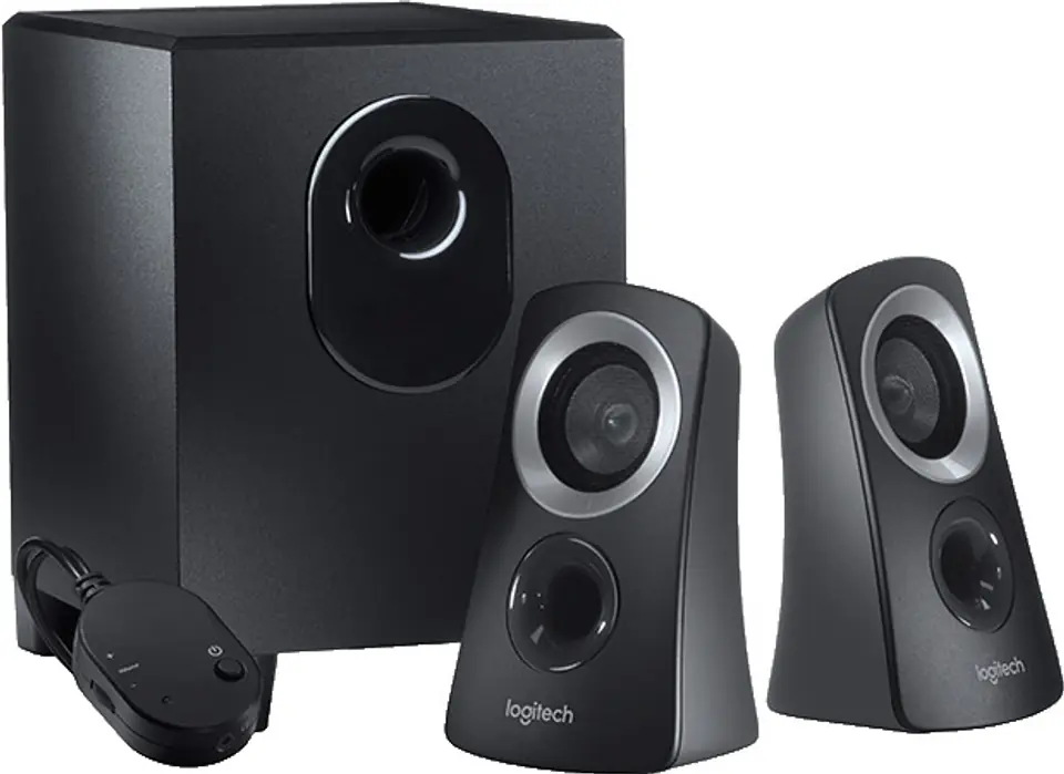 Logitech Speaker System Z313 Zrelaksuj się, słuchając muzyki z prostego w obsłudze zestawu głośników, który oferuje wygodny panel sterowania i pełne, zrównoważone brzmienie.