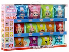 LOL Surprise has partnered with iconic brands like Junior Mints, Tootsie, Tootsie Pop, Hersheys Bubble Yum, Dots, Haribo Goldbears, Haribo Frogs, Haribo Twin Snakes and Haribo Happy Cherries to bring you dolls inspired by your favorite sweets! Each doll has a unique style that is tastier than ever and goes with any treat.