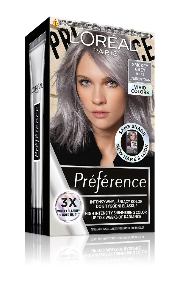 L'Oréal Paris Préférence Vivid Colors, durable hair dye, 9.112 Smokey Grey