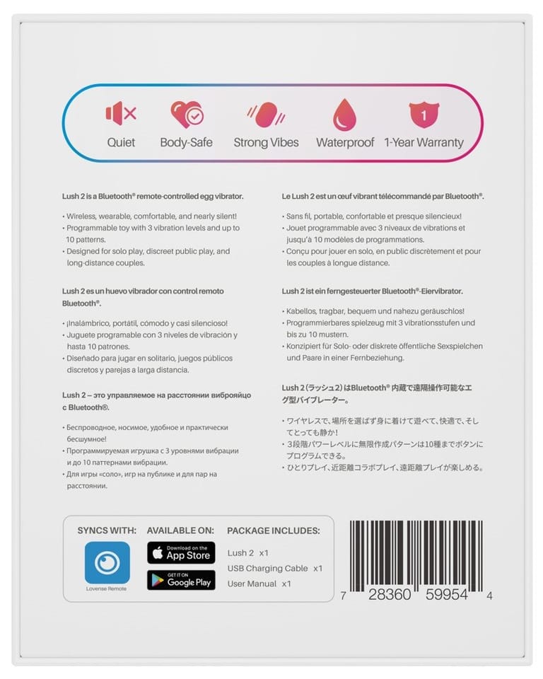 After playing, clean your Lush 2 egg with warm water with the addition of mild antibacterial soap or intimate hygiene liquid. Then disinfect them with preparations designed specifically for this purpose. This gadget is charged using a USB charger that comes with the package. One full charge gives you up to three hours of fun.