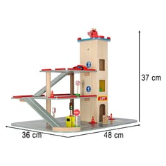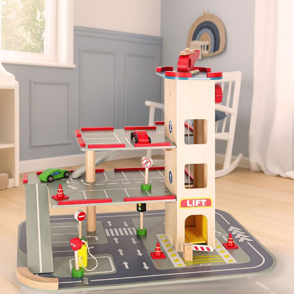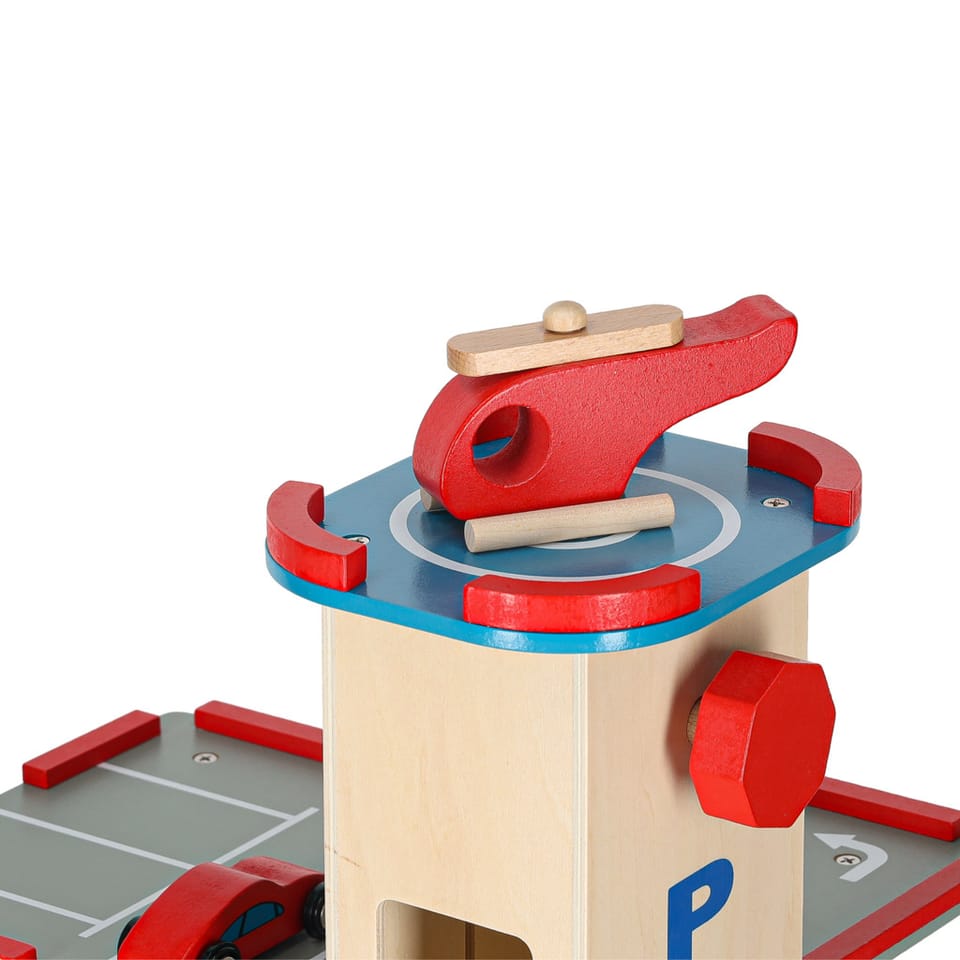 The beautiful wooden city garage has as many as four levels! The first three are designed for cars - there will be a place for wooden cars included in the set, as well as many other vehicles of your child. They will get to the next floors with the help of an elevator!