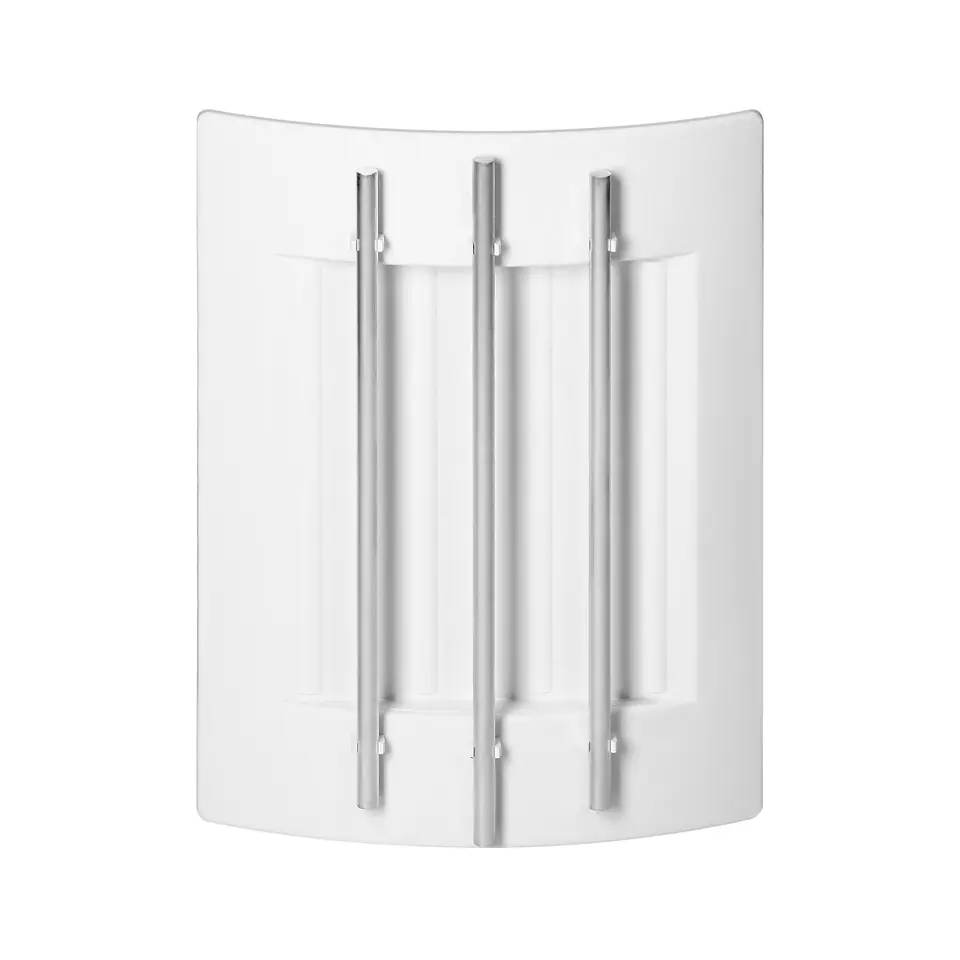 Wired electromechanical bell powered by external 230/8V AC transformer, two BIM-BAM sounds. The housing of the bell is white, and the decorative elements are in silver.