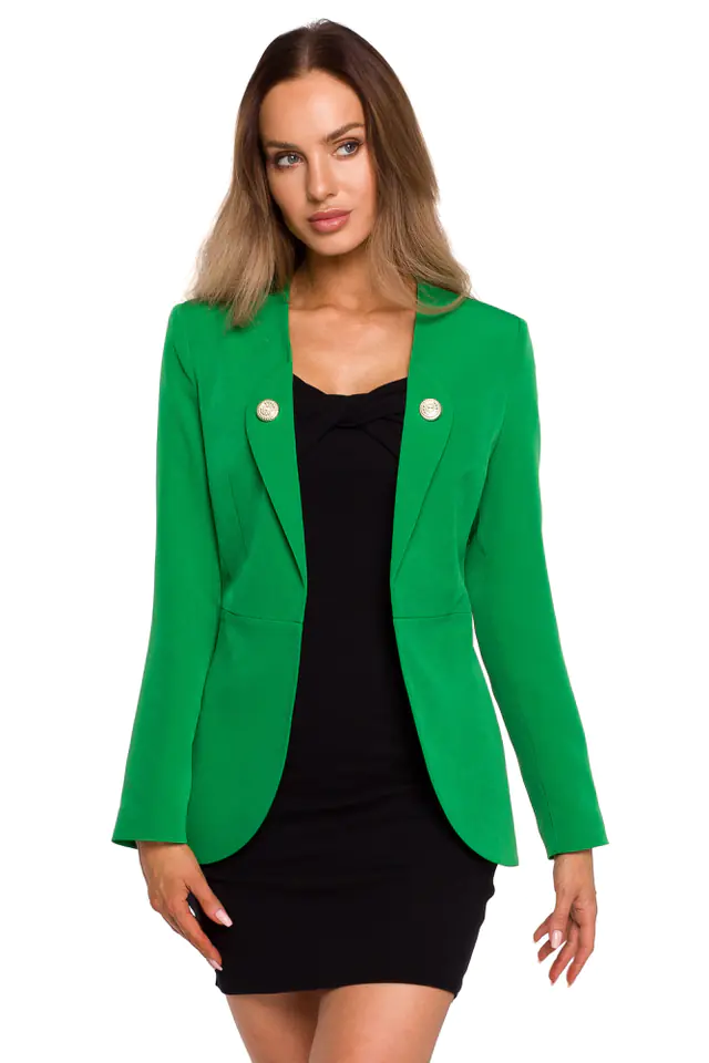 żakiet bez zapięcia z dekoltem V wzdłuż dekoltu zaokrąglone klapy z okrągłymi guzikami