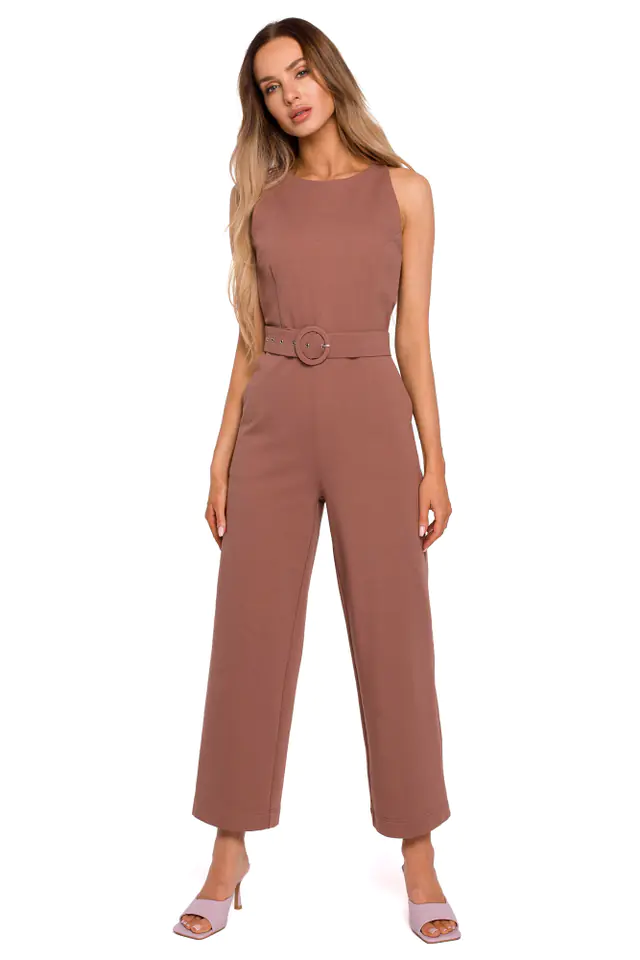 Szybka, pełna stylizacja to jednoczęściowy kombinezon bez rękawów, z szerokimi nogawkami 7/8 - idealnie pasujący do tenisówek jak i sandałów na obcasie, z paskiem z klamrą, który podkreśli talię i będzie wyjątkowym eleganckim wykończeniem.