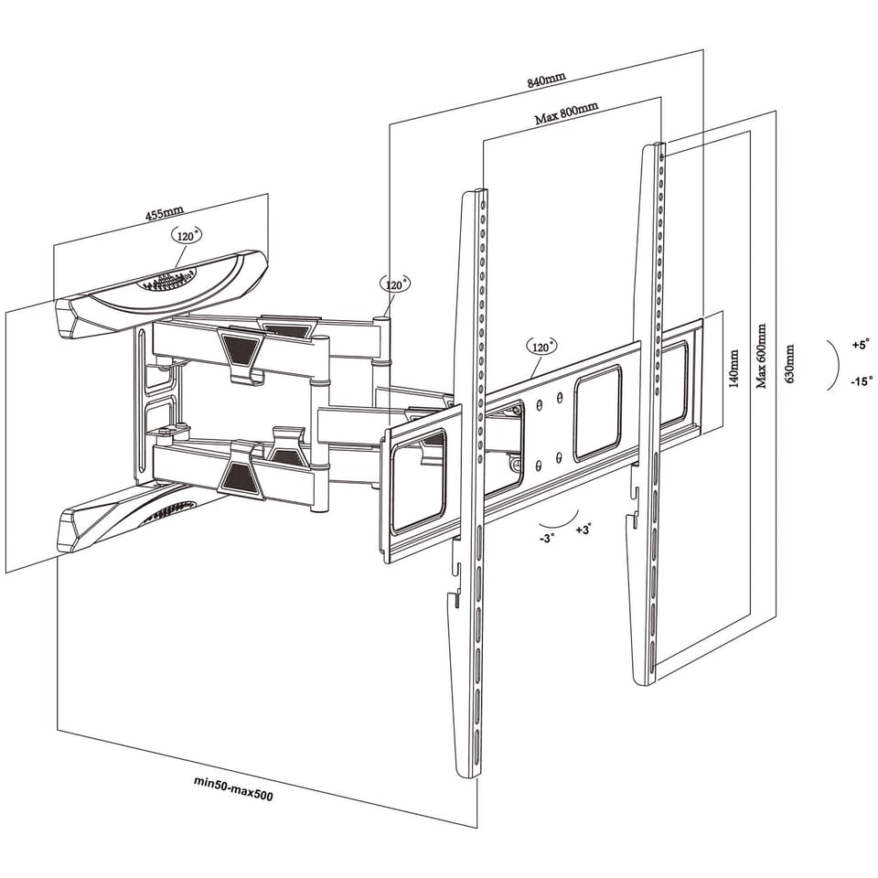 Maclean MC-423 TV Mount Full Motion Wall TV Bracket 43"-100" 80kg max VESA 800x600 Adjustable Tilting Rotating Wall Distance Holder Bracket