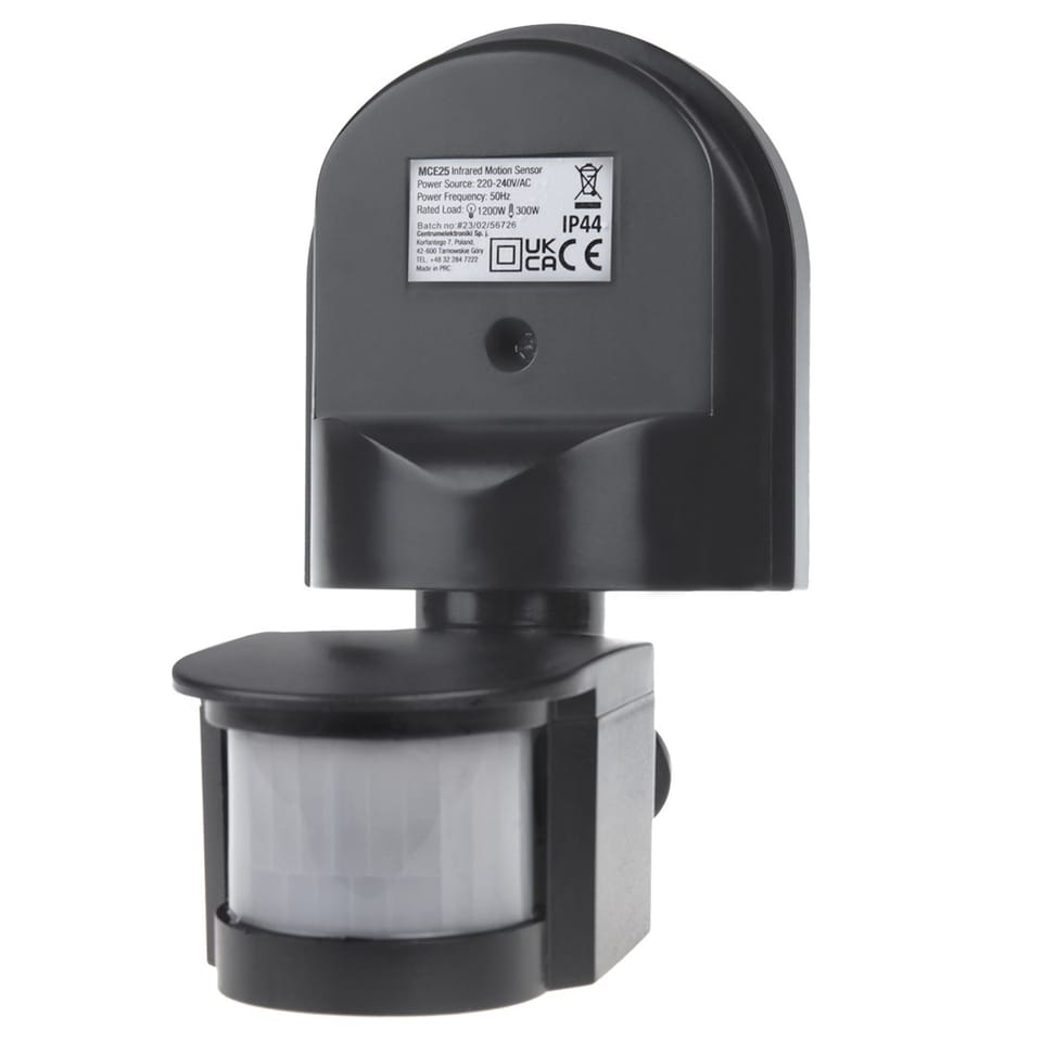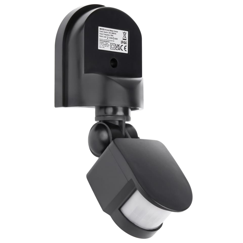 Maclean MCE25 GR Wall-Mounted 180° Motion & Dusk Sensor, 1200W Max, Grey