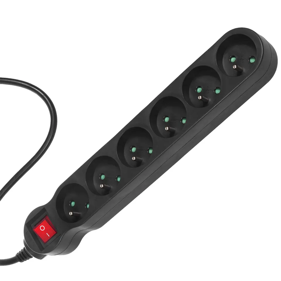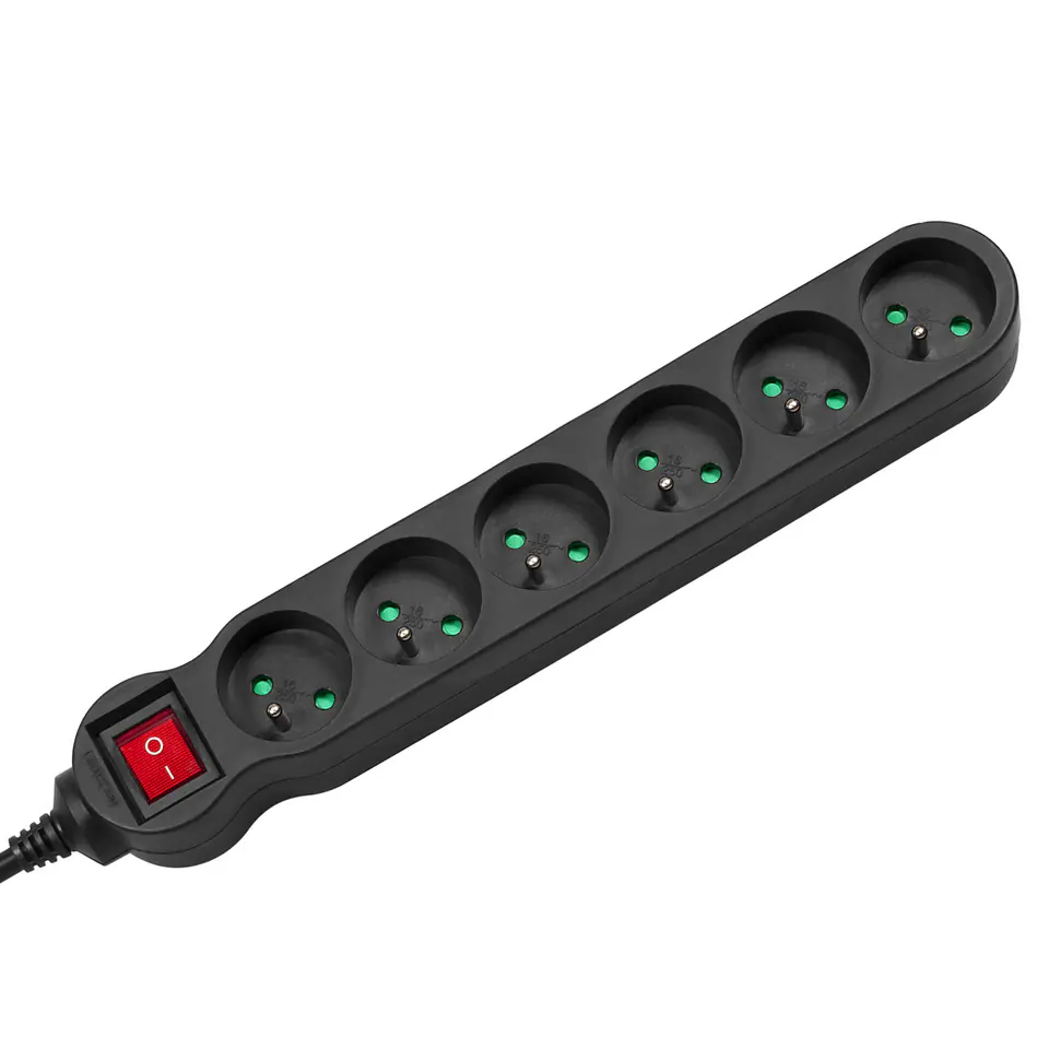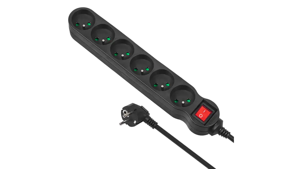 The power strip with 6 sockets allows you to connect up to six full-size plugs at the same time. It has child protection and a built-in illuminated network switch. Excellent in every workshop, store and even at home.