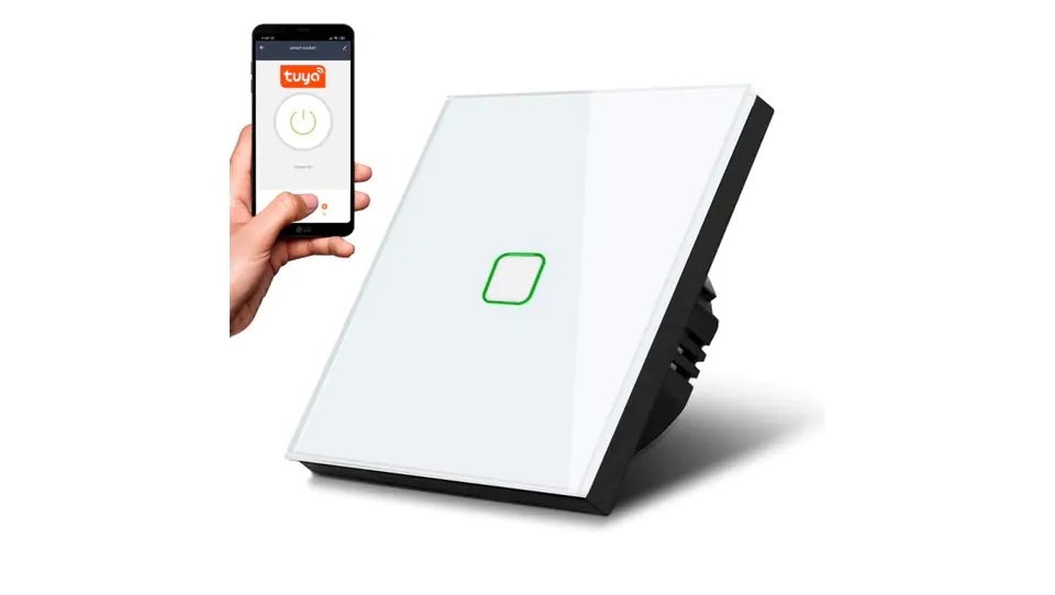 Maclean Touch Light Switch, Single, SMART, Tuya APP, Glass, White with Square Light button, 86x86mm, MCE716W