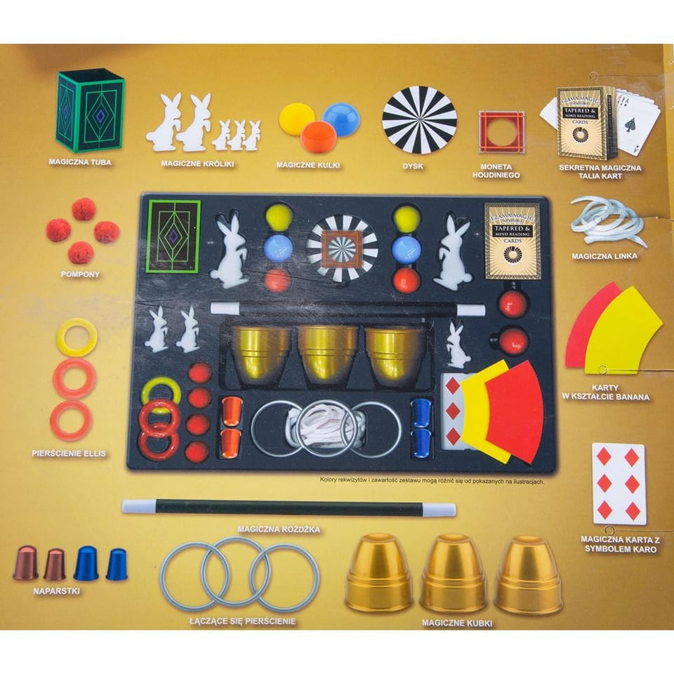 A collection of truly amazing magic tricks. Excellent quality props and crystal clear instructions enable the youngest magicians to perform truly amazing tricks! This set has some absolute classics, connecting rings, magic cups and a real, amazing deck of magic playing cards with which you can perform amazing card tricks.