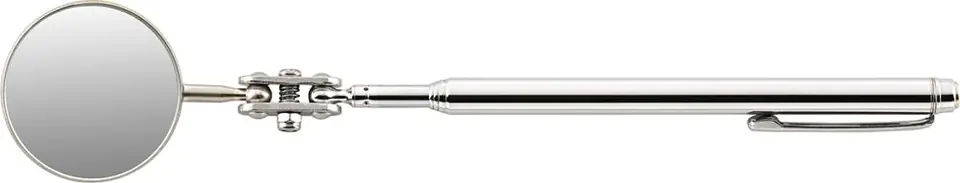Made of steel, chrome-plated, with telescopic grip and round mirror (Ø 40 mm).