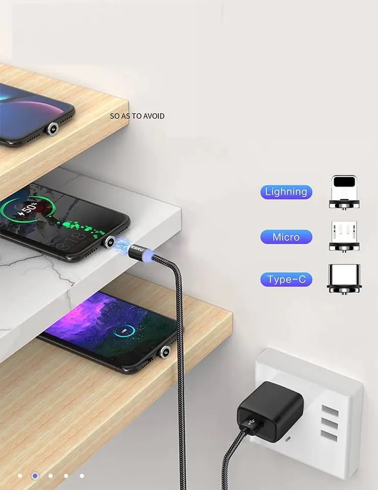 Magnetic Cable braided 3in1 (Micro USB, USB-C, Lightning)