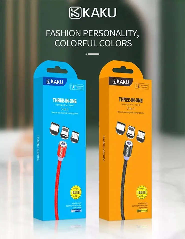 Magnetic Cable 3in1 (USB Type C + Lightning + Micro USB) 3A 1m KAKU Magnetic Charging Cable KSC-320) blac