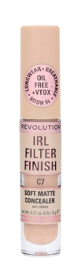 Korektor Makeup Revolution IRL Filter Finish Concealer zapewnia miękkie wykończenie i natychmiastowe krycie, aby zatuszować przebarwienia, cienie i drobne zmarszczki. Ten w pełni kryjący korektor ma oddychającą, miękką, matową formułę, jest bardzo wygodny w użyciu i pozostaje na swoim miejscu przez 16 godzin!