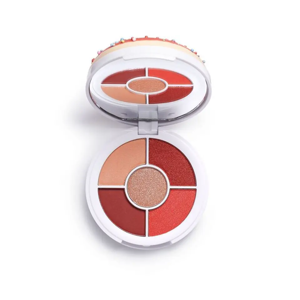 Donuts discus are a new proposition from Makeup Revolution. In each palette there are 5 heavily pigmented shadows, each preserved in the same key. The shadows have a matte and glossy finish.