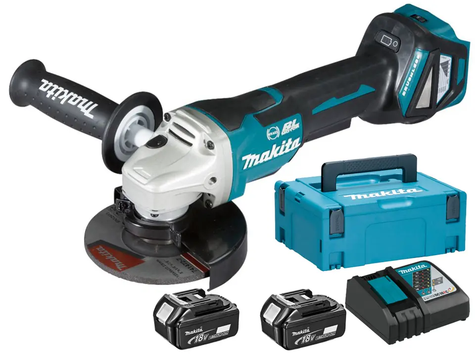 MAKITA. ANGLE GRINDER. 18V DGA517RTJ 125mm 2x5,0Ah REG. REV. BLDC PADDLE SWITCH