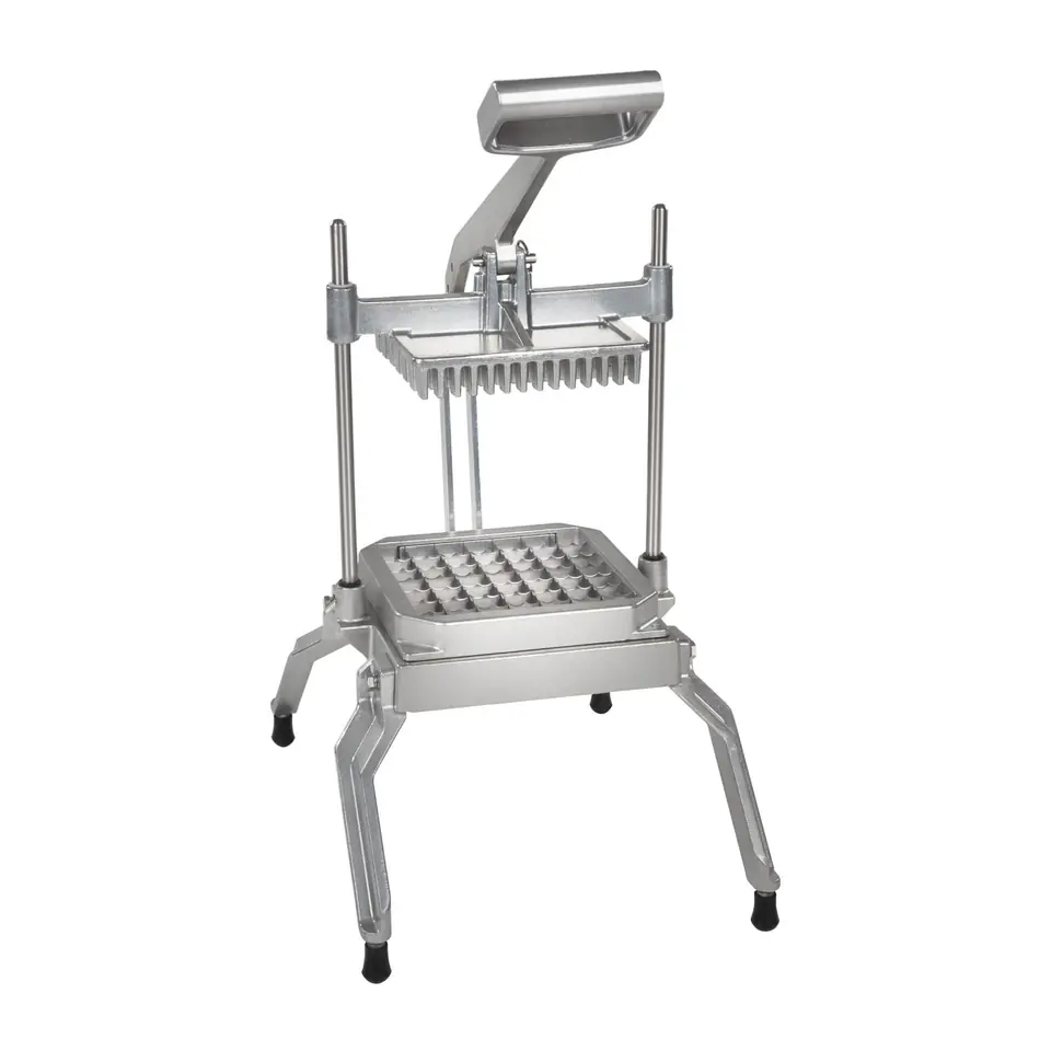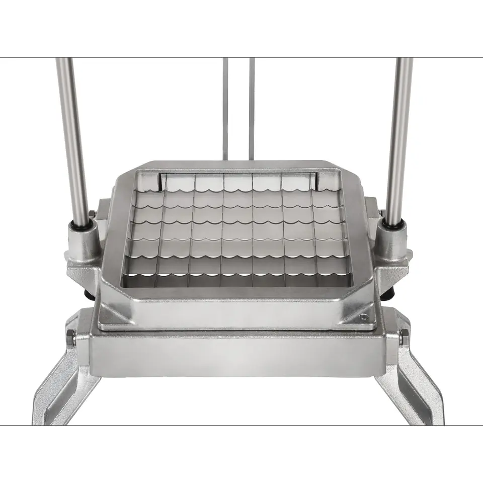 Professional, manual slicer made entirely of steel used for quick cutting of fruits and vegetables into equal cubes with dimensions of 2.5x2.5cm.