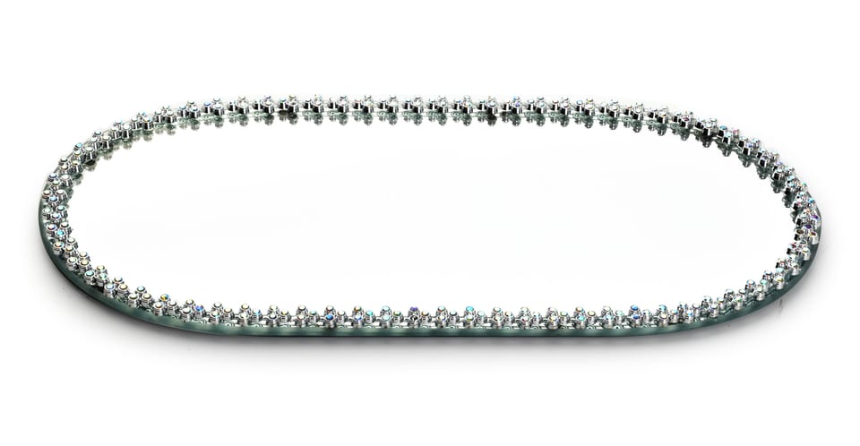 with decoration on the edge, mirror center. Ideally suited